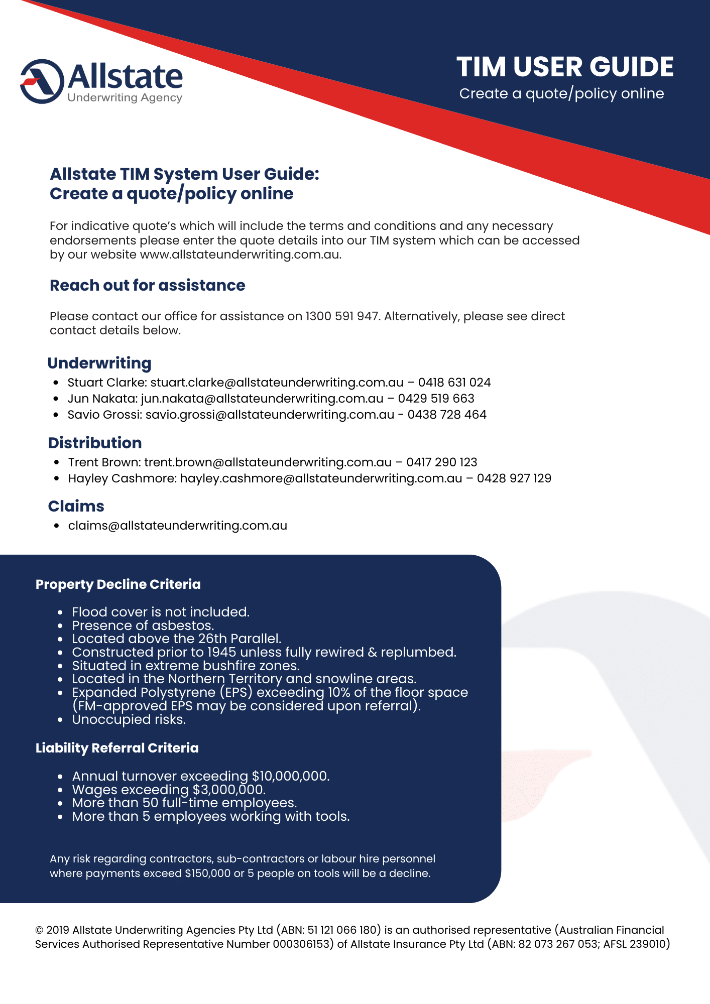 Key Docs and Resources Business Insurance: PDS & Occupation List Business Insurance PDS 1/5/23 Download Business & Trade Occupation List 29/03/2025 Download Farm Pack: Product Disclosure Statements (PDS) Product Disclosure Statement (PDS) Effective 1/11/25 Download Product Disclosure Statement (PDS) Effective 1/12/24 Download Product Disclosure Statement (PDS) Effective 6/6/23 Download Product Disclosure Statement (PDS) Effective 21 Download Supplementary PDS Effective 1/1/22 Download Farm Pack: Target Market Determination (TMD) Target Market Determination (TMD) Effective 1/11/25 Download Target Market Determination (TMD) Effective 1/12/24 Download Target Market Determination (TMD) Effective 6/6/23 Download Target Market Determination (TMD) Effective 5/10/21 Download Farm Pack: Key Fact Sheets (KFS) Key Fact Sheet (KFS) Home Contents Nov 2025 Download Key Fact Sheet (KFS) Home Building Nov 2025 Download Key Fact Sheet (KFS) Home Contents 2025 Download Key Fact Sheet (KFS) Home Building 2025 Download Key Fact Sheet (KFS) Home Contents 2023 Download Key Fact Sheet (KFS) Home Building 2023 Download Livestock Insurance: Up to $50K Excess Livestock up to $50K 0% Excess Download Livestock up to $50K 10% Excess Download Livestock up to $50K 15% Excess Download Livestock up to $50K 20% Excess Download Livestock up to $50K 25% Excess Download Livestock Insurance: Over $50K Excess Livestock over $50K 0% Excess Download Livestock over $50K 10% Excess Download Livestock over $50K 15% Excess Download Livestock over $50K 20% Excess Download Livestock over $50K 25% Excess Download Wording Documents Herdcover Wording Prepared 5/2/24 Download Mortality Wording Prepared 28/2/24 Download Other Farm Documents & Tools Renewal Migration Template Effective 09/22 Download ATOM User Guide Download Home & Contents Sum Insured Calculator Access General Documents Financial Services Guide Effective 2025 Download Financial Services Guide Effective 2023 Download Family Violence / Vulnerable Customers Download TIM user Guide Download